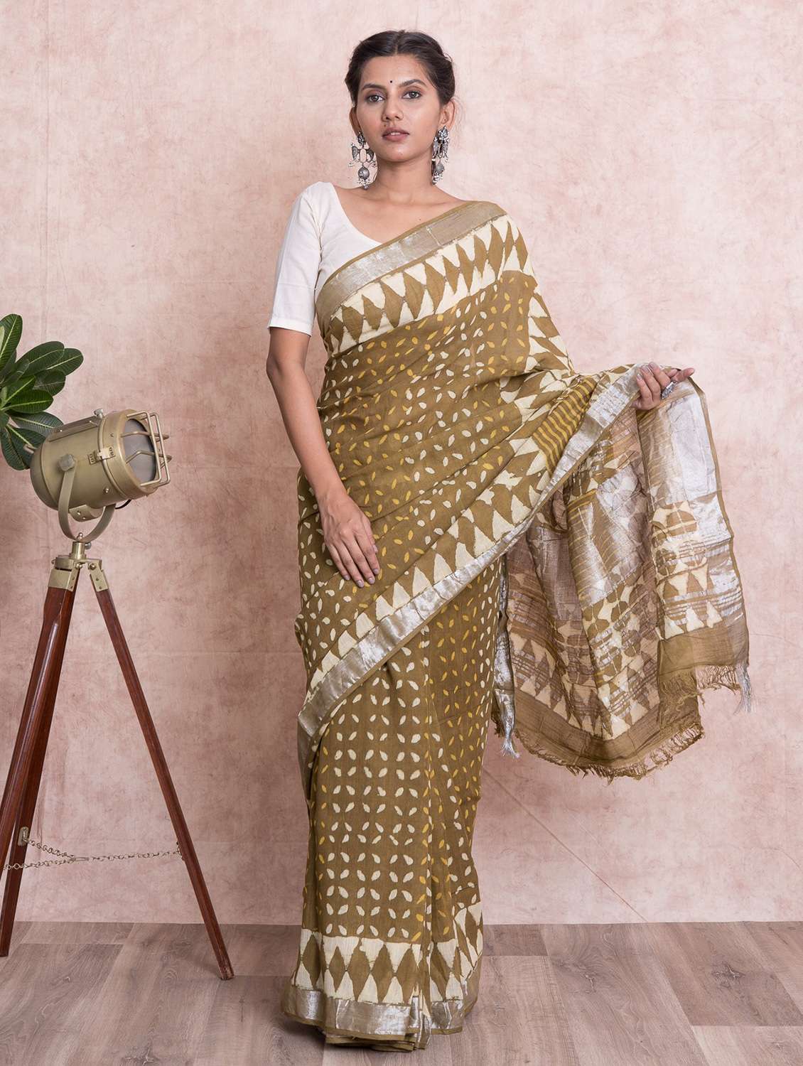 An amazing range of womens ethnic wear in soft and solid colors that looks perfect for regular wear. With beautiful designs and patterns. These apparels are very stylish and comfortable too. Get rid of the regular look this season wearing these Sarees by KISHORI. This mustard dabu print geometric pattern saree from KISHORI exhibits 5.5 mtrs saree and 1 mtr blouse fabric. Tailored from Cotton Linen.
