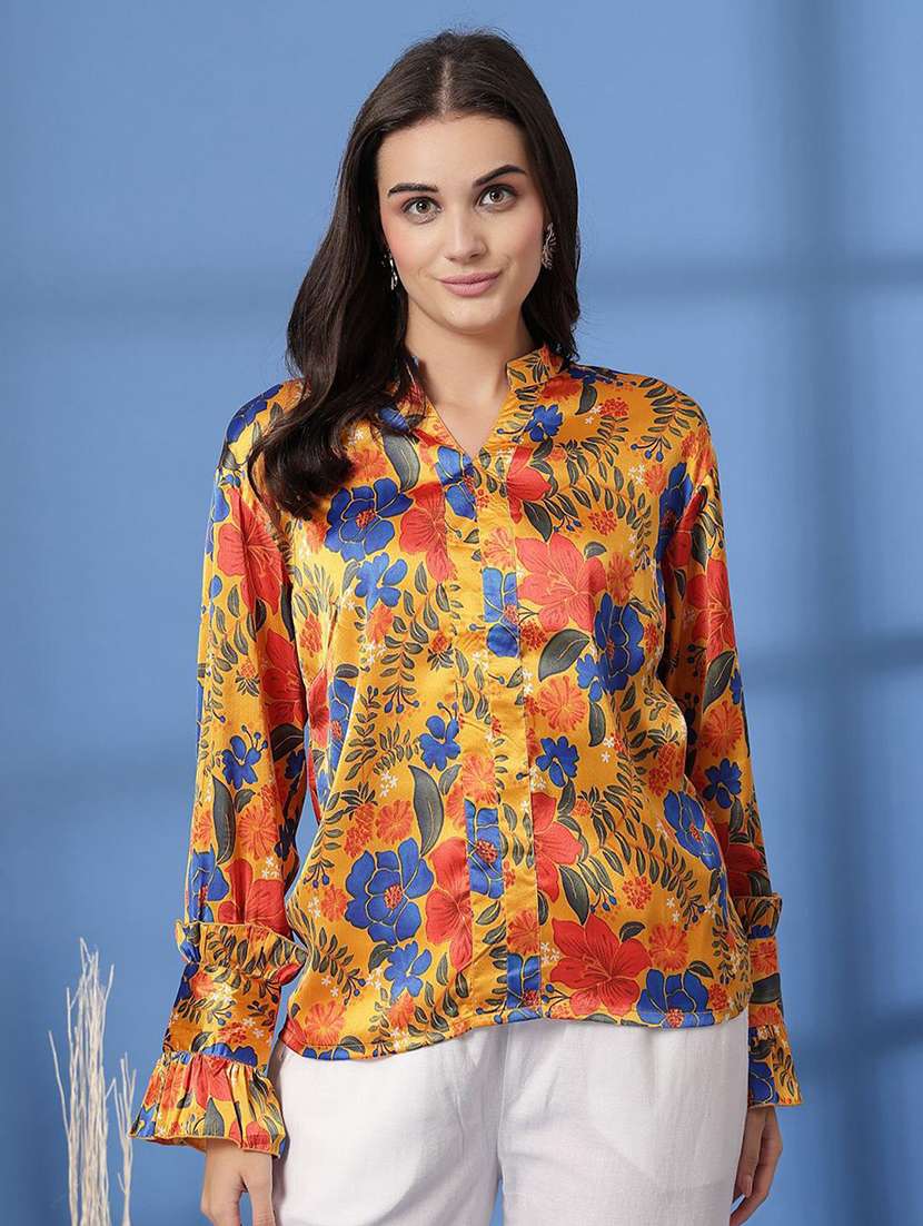 - » women printed mandarin neck western top