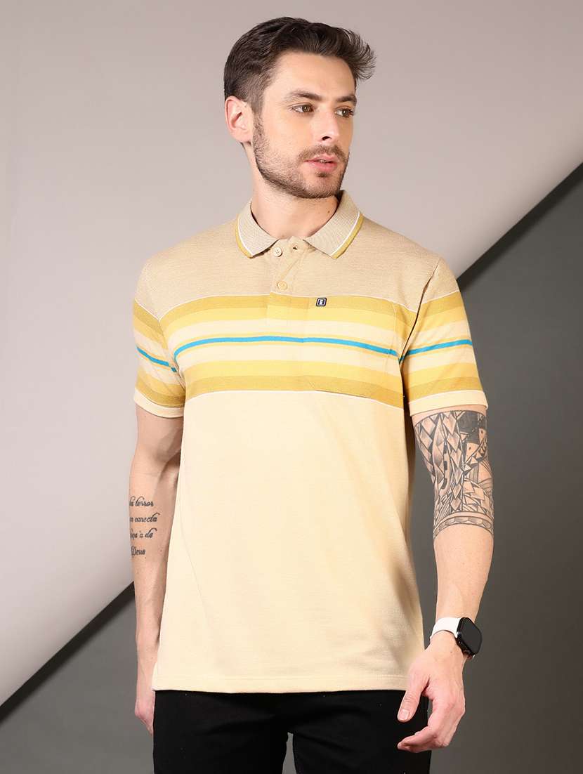 men striped short sleeve regular fit polo t-shirt