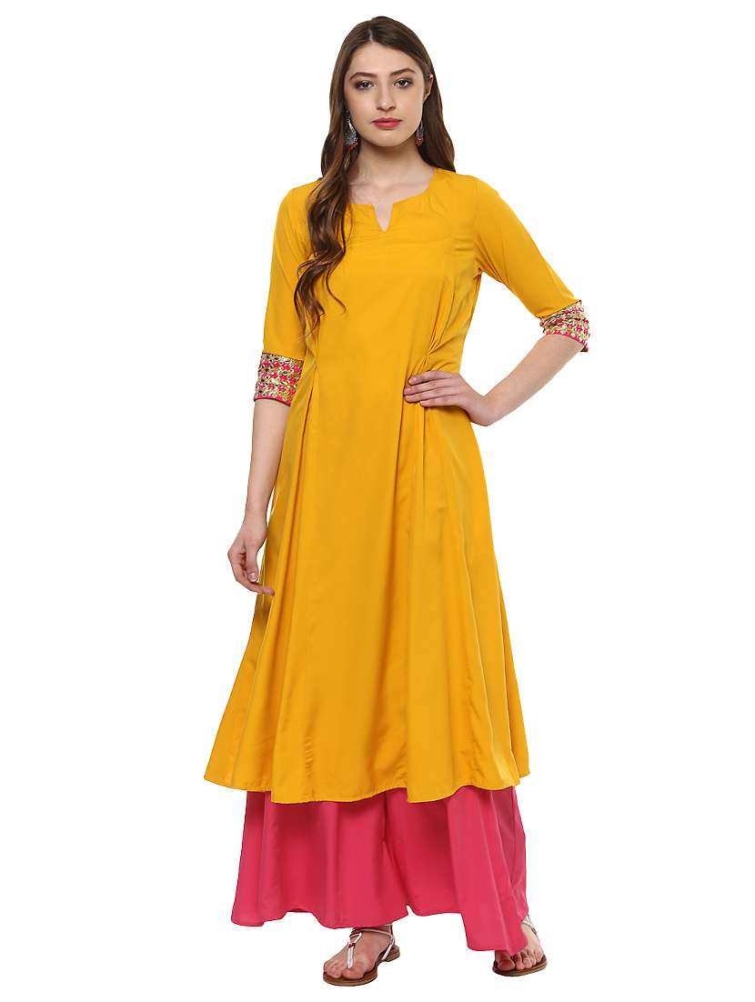 - » mustard poly crepe flared kurta