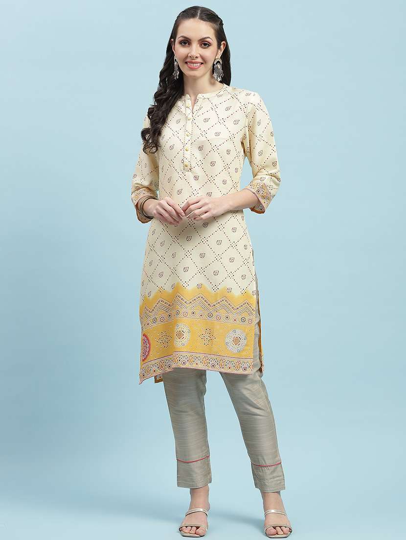 women printed three quarter sleeve straight kurta