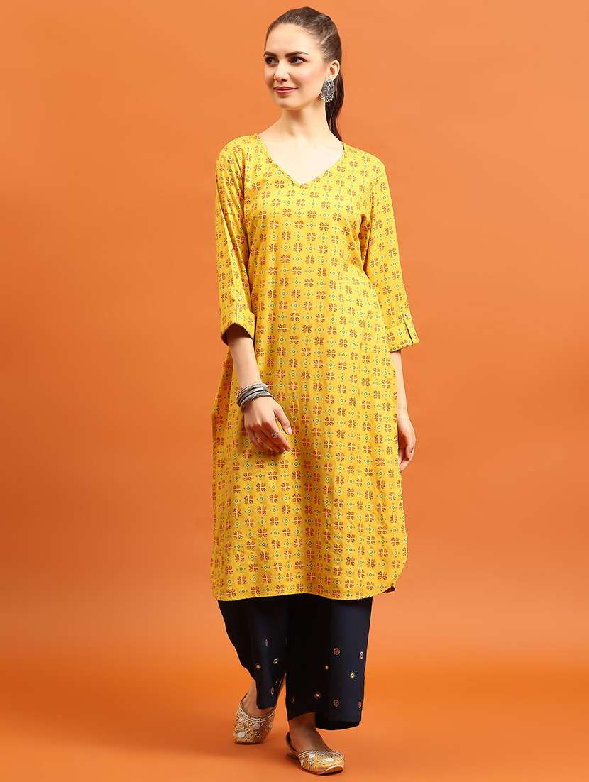 - » women printed three quarter sleeve straight kurta