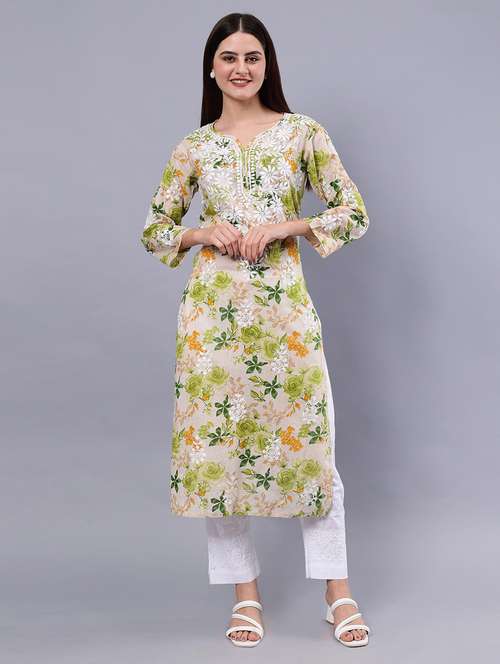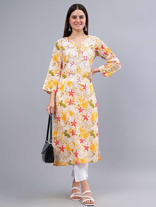 - Grab this beautiful kurta made up of rayon fabric featuring notch neck designs.