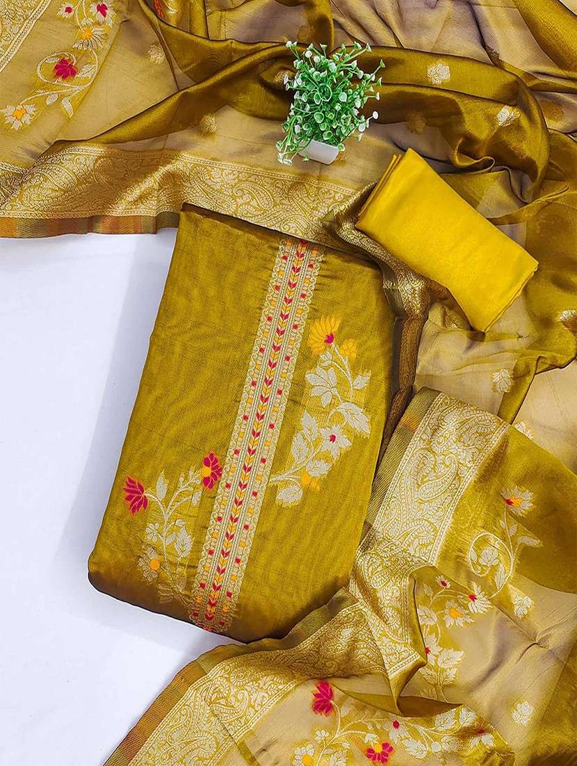 - Look ultra gorgeous in unstitched suits from Peachmode and grab these beautiful suits in mustard colour.