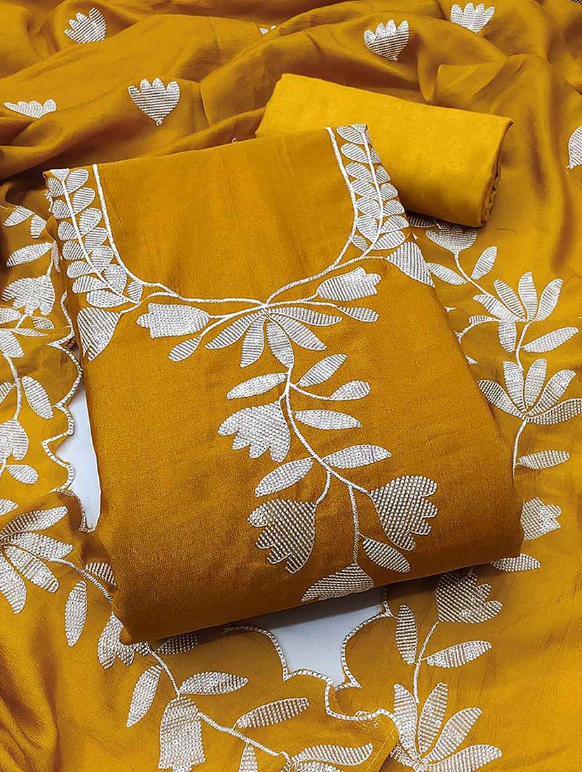 - Look ultra gorgeous in unstitched suits from Peachmode and grab these beautiful suits in mustard colour.