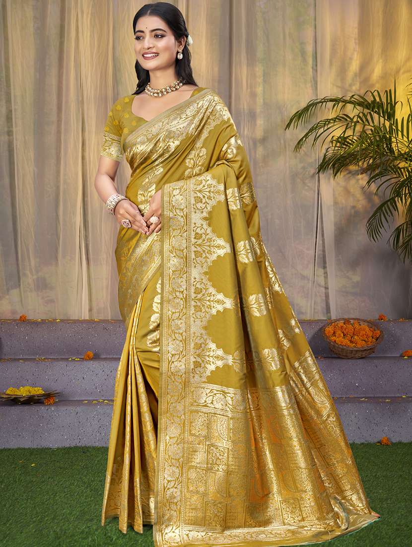 Sangam Prints Mustard Silk Woven Work Festival Saree