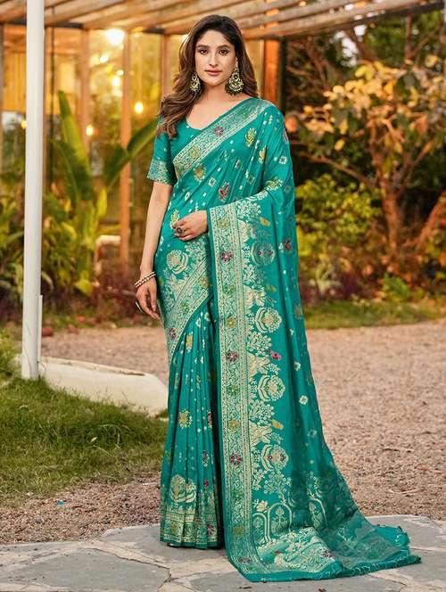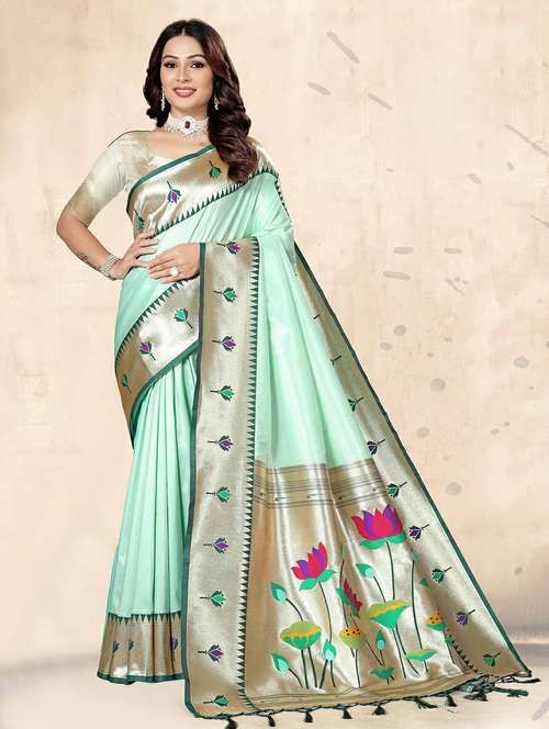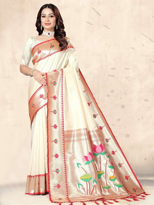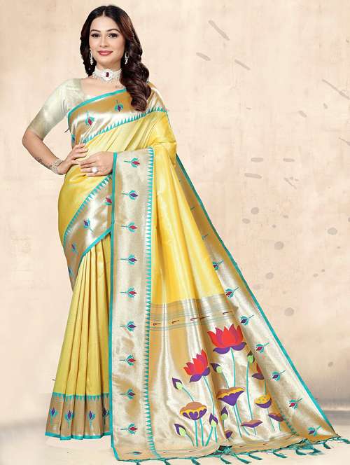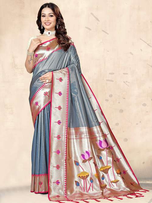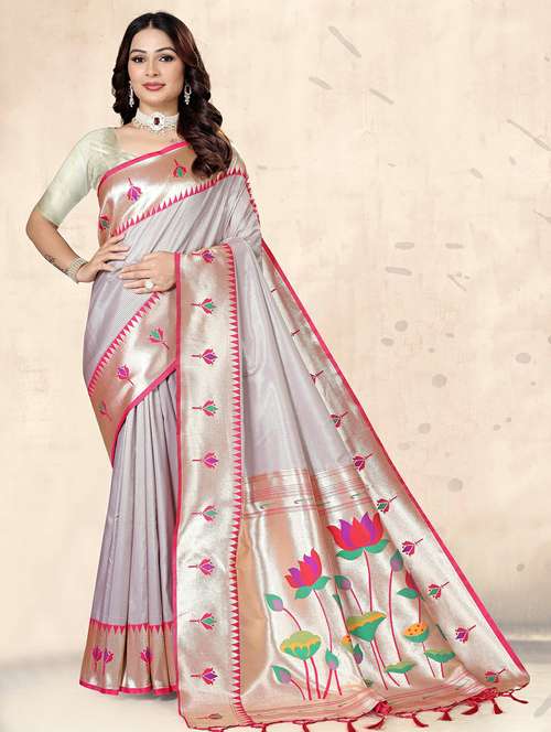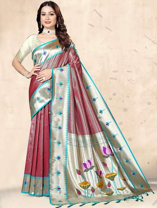 Mengo Soft Tissue silk Paithani saree with rose gold zari weave