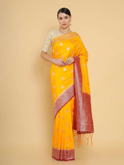 yellow silk jamdani saree with blouse - 18932729 - Very Small Image - 1