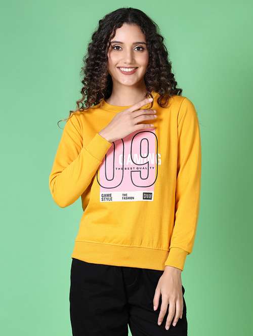 - Recreate your winter style with the all new frisky design options of sweatshirts available in yellow shades and hues to brighten up the chilly days.