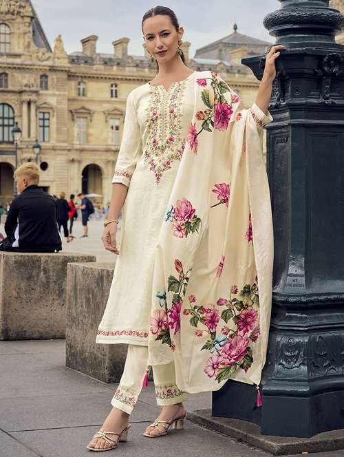women embroidered kurta pant set with dupatta