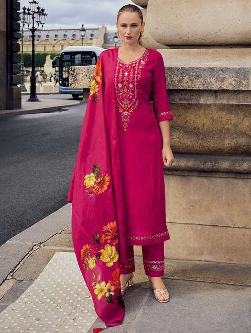 - Browse through the latest range of ethnic sets for women with tailored sleeve designs with embroidered works.