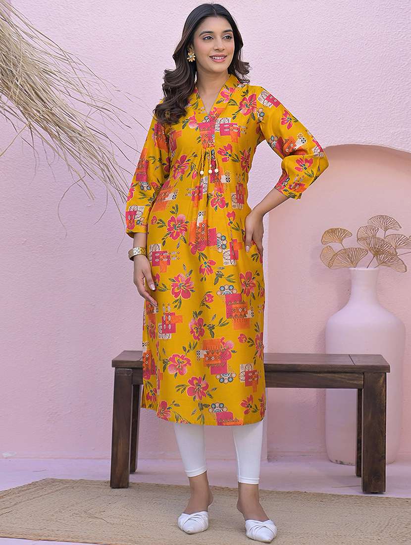 - Grab this beautiful kurta made up of viscose fabric featuring v neck neck designs.