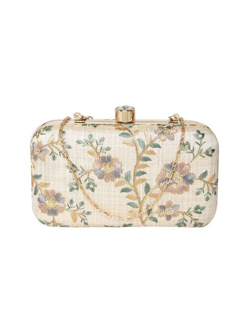 natural faux silk box clutch