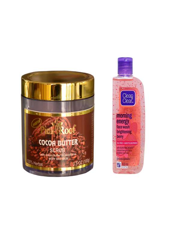 - » pink root cocoa butter scrub with clean & clear morning energy face wash brightening berry