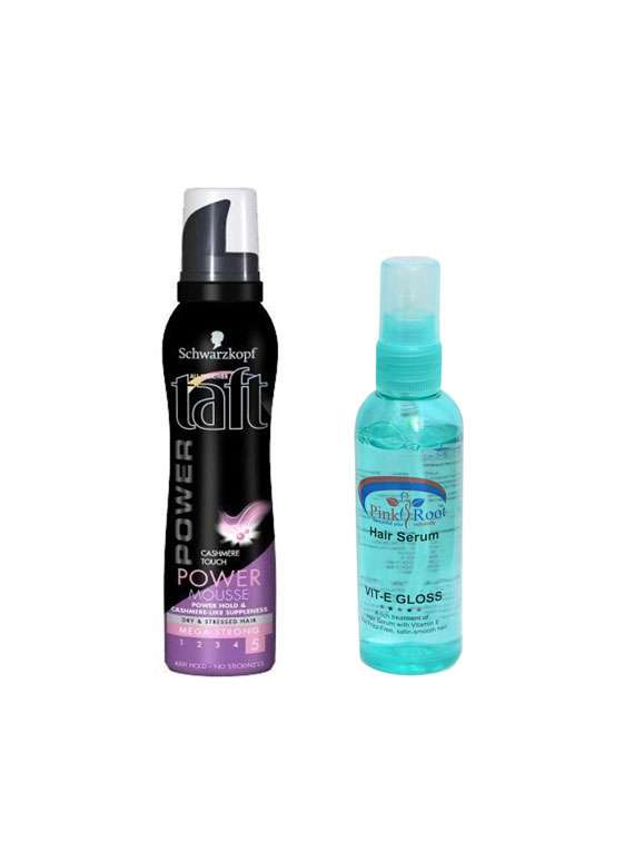 pink root hair serum (100ml) with schwarzkopf taft power mousse power holds & cashmere-like suppleness (150ml) pack of 2