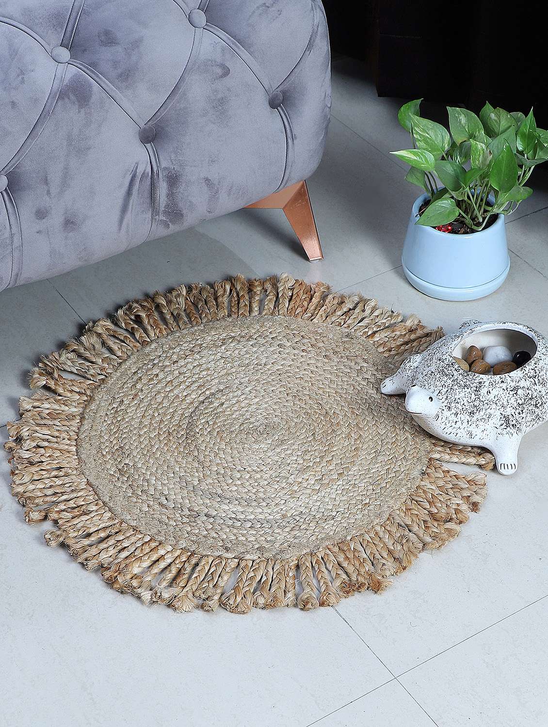 natural jute solid 2 x 2 feet hand woven carpet by mnd villa