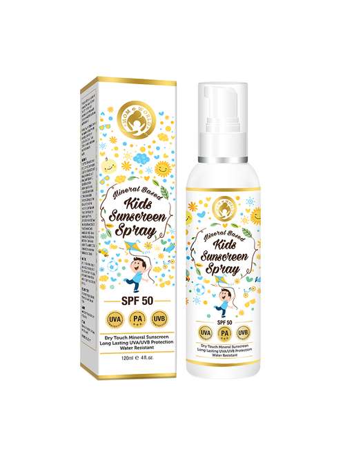 Mom & World Kids Sunscreen Spray is formulated to protect the tender skin of children from sunburn and tanning. To thwart the harmful activities of free radicals and preserve the supple texture of the delicate skin, it is crafted with sunscreen agents proven to be safe for the tender skin. Now you can encourage your children to play outdoors without worrying about sunburn and skin damage by slathering the gentle yet effective sunscreen on hands, legs, face and neck of your little ones. Mineral-Based Sun Protection Mineral-based sunscreen is gentle and safe for the delicate skin. The physical sunscreen agents, titanium dioxide and zinc oxide, though mild on the skin, work as powerful UV ray blockers. The skin feels dry to touch so that children feel comfortable while playing in the sun. Botanical Extract for Healthy Skin To preserve the supple smooth texture of the young skin, multiple fruit, flower and leaf extracts are blended in the sunscreen. Aloe vera gel soothes and hydrates the skin and protects against irritation. Watermelon extract cools and hydrates the skin. Green tea is rich in antioxidants that diminish skin damage. Chamomile, gotu kola and haritaki keep skin healthy. Lightens Blemishes Citric acid in the sunscreen works as a skin lightening agent. It helps in fading freckles and restores the natural even complexion of the child. Convenient and Safe You can easily carry the Kids Sunscreen Spray bottle in your bag while travelling with your children. It’s easy to use and can be applied on the exposed parts of your child’s body as needed. Free from mineral oil, paraben, sulphates and other toxic substances, this sunscreen is absolutely safe for children. It helps maintain the protective barrier of the delicate sensitive skin and eliminates risk of discoloration, skin irritation and damage.