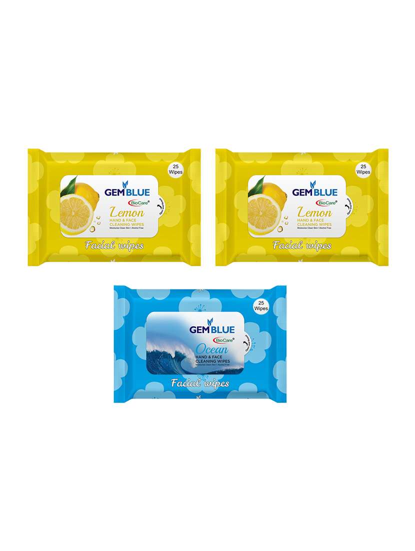 - » gemblue biocare lemon + lemon + ocean facial wipes pack of 3
