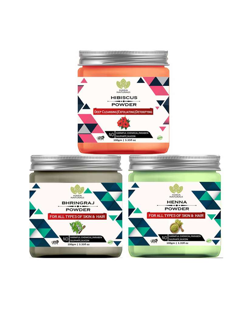 100% pure & naturals hibiscus powder 100gm & bhringraj powder 100gm & henna powder 100gm (pack of 3) 300gm
