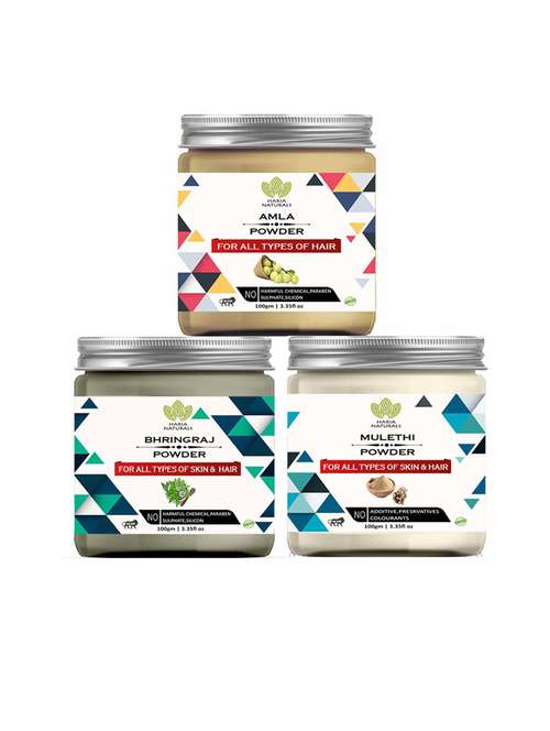- » 100% pure & naturals amla powder 100gm & bhringraj powder 100gm & mulethi powder 100gm (pack of 3) 300gm