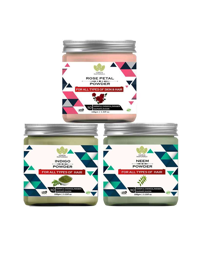 100% pure & naturals rose petal powder 100gm & indigo powder 100gm & neem powder 100gm (pack of 3) 300gm