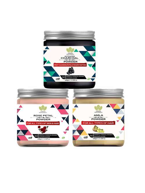 - » 100% pure & naturals charcoal powder 100gm & rose petal powder 100gm & amla powder 100gm (pack of 3) 300gm