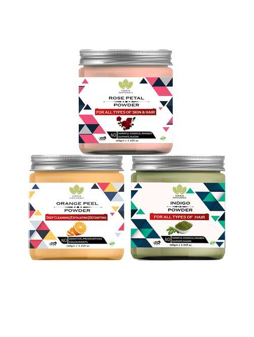 100% pure & naturals rose petal powder 100gm & orange peel powder 100gm & indigo powder 100gm (pack of 3) 300gm