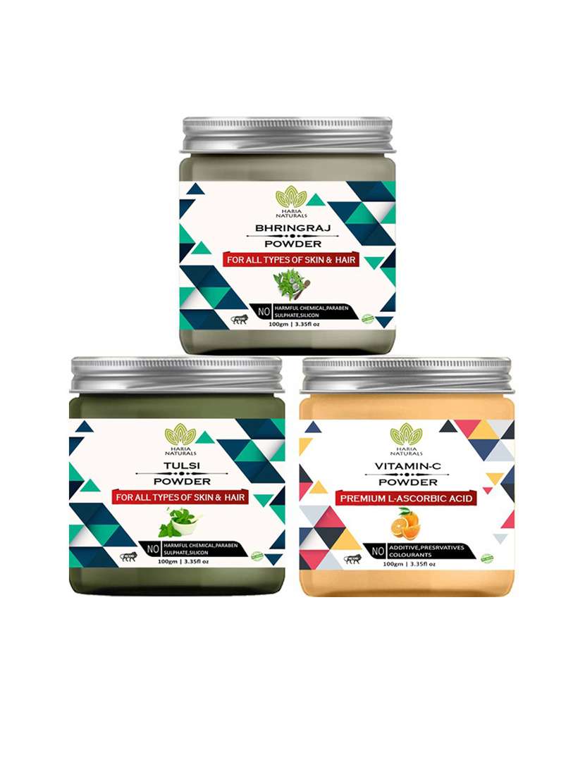 - » 100% pure & naturals bhringraj powder 100gm & tulsi powder 100gm & vitamin-c powder 100gm (pack of 3) 300gm