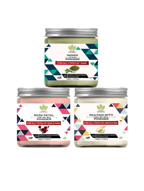 - » 100% pure & naturals indigo powder 100gm & rose petal powder 100gm & multani mitti powder 100gm (pack of 3) 300gm