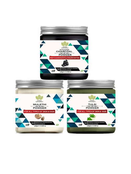 - » 100% pure & naturals charcoal powder 100gm & mulethi powder 100gm & tulsi powder 100gm (pack of 3) 300gm