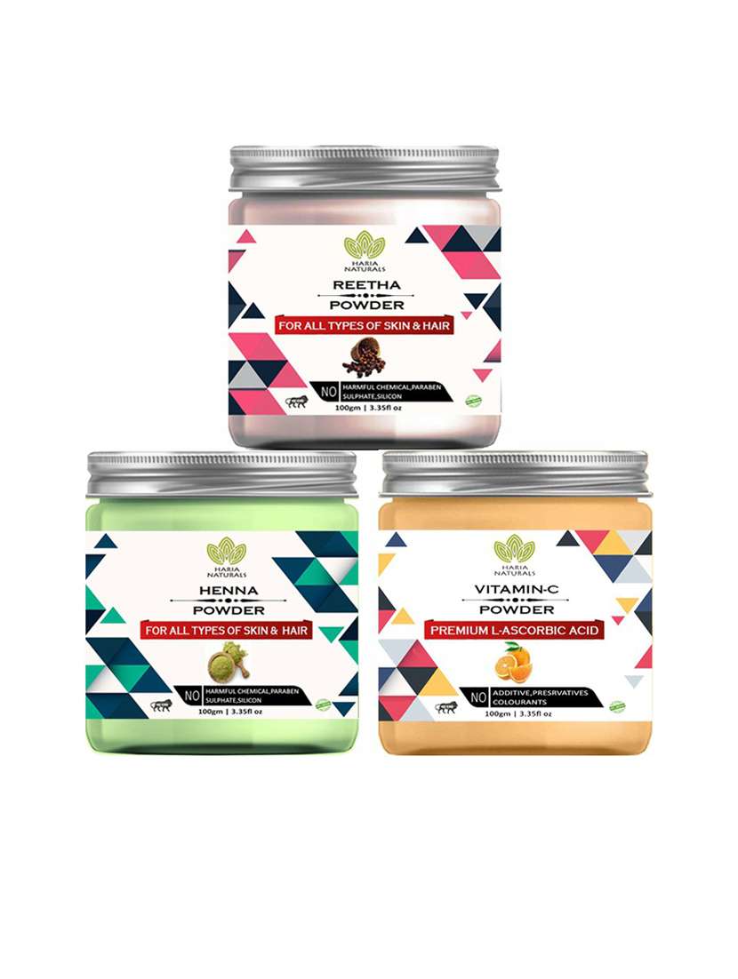 - » 100% pure & naturals reetha powder 100gm & henna powder 100gm & vitamin-c powder 100gm (pack of 3) 300gm