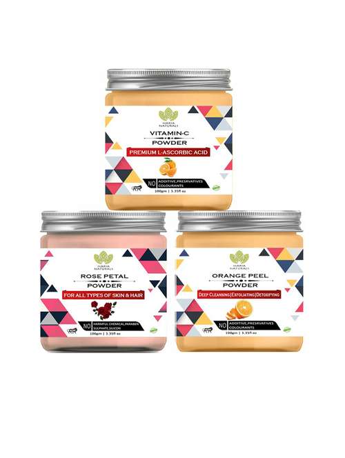 100% pure & naturals vitamin-c powder 100gm & rose petal powder 100gm & orange peel powder 100gm (pack of 3) 300gm