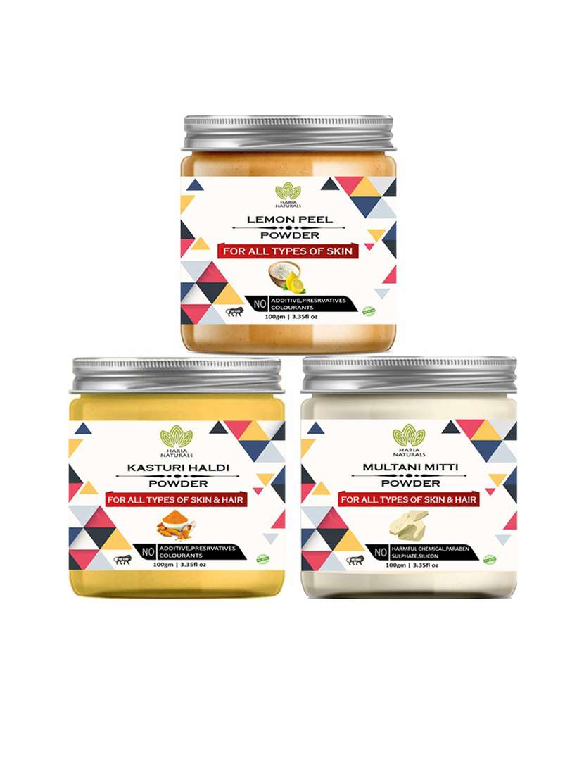 - » 100% pure & naturals lemon peel powder 100gm & kasturi haldi powder 100gm & multani mitti powder 100gm (pack of 3) 300gm