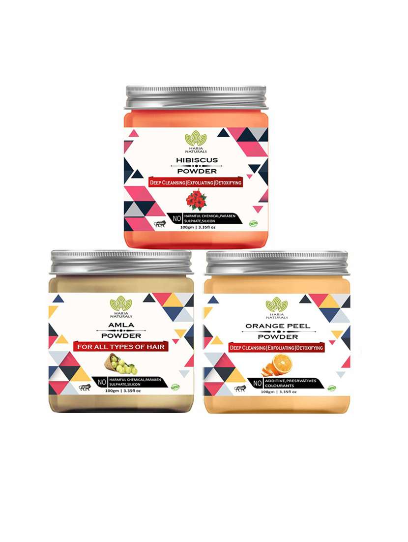- » 100% pure & naturals hibiscus powder 100gm & amla powder 100gm & orange peel powder 100gm (pack of 3) 300gm