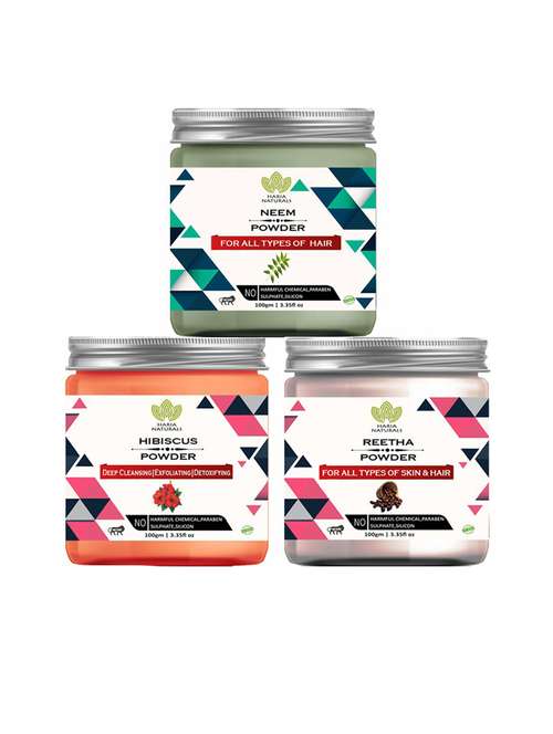 100% pure & naturals neem powder 100gm & hibiscus powder 100gm & reetha powder 100gm (pack of 3) 300gm