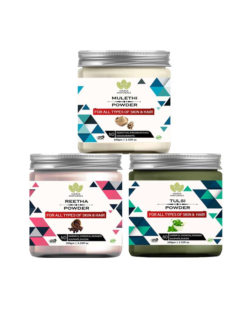100% pure & naturals mulethi powder 100gm & reetha powder 100gm & tulsi powder 100gm (pack of 3) 300gm