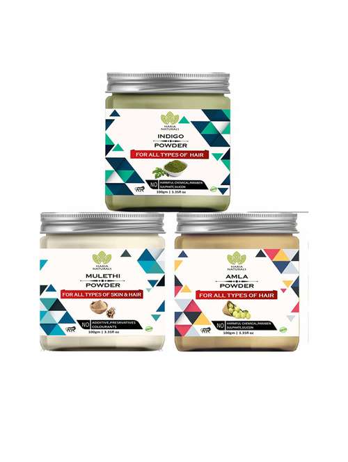 - » 100% pure & naturals indigo powder 100gm & mulethi powder 100gm & amla powder 100gm (pack of 3) 300gm