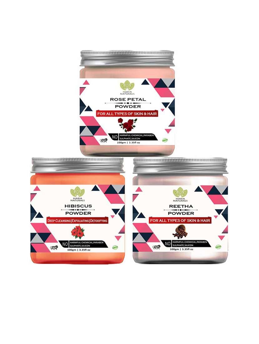- » 100% pure & naturals rose petal powder 100gm & hibiscus powder 100gm & reetha powder 100gm (pack of 3) 300gm