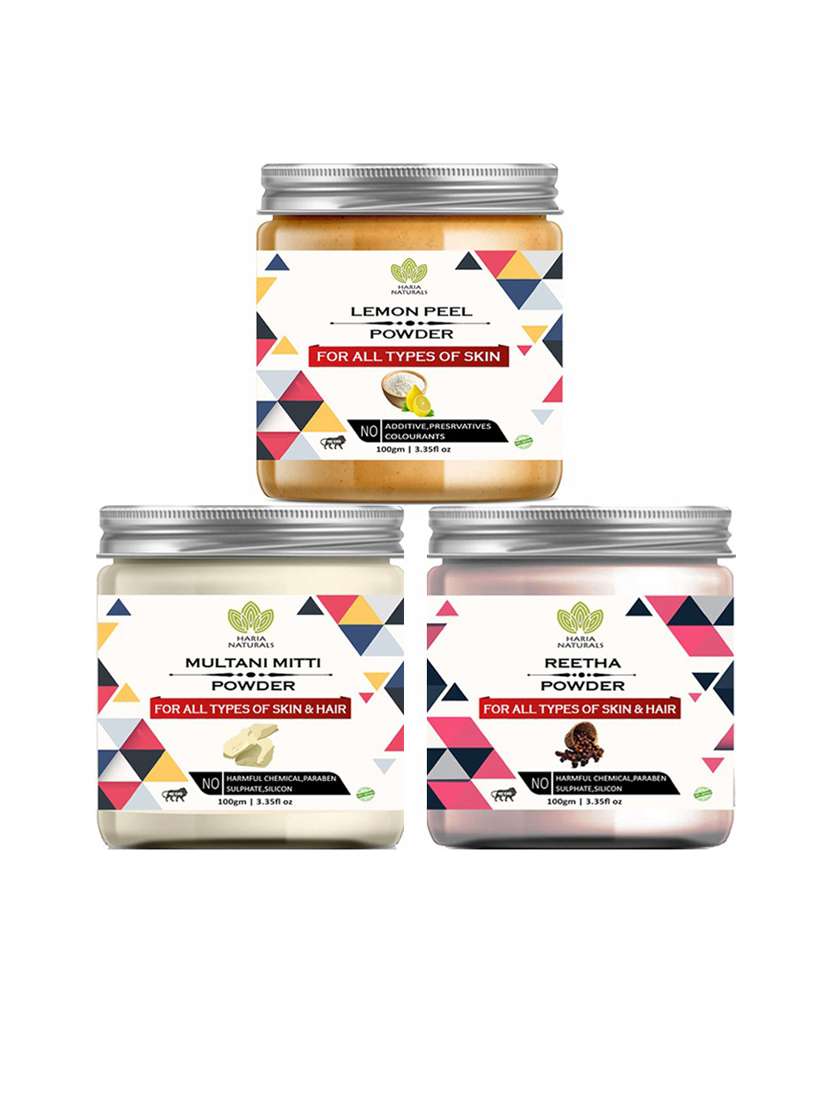 - » 100% pure & naturals lemon peel powder 100gm & multani mitti powder 100gm & reetha powder 100gm (pack of 3) 300gm