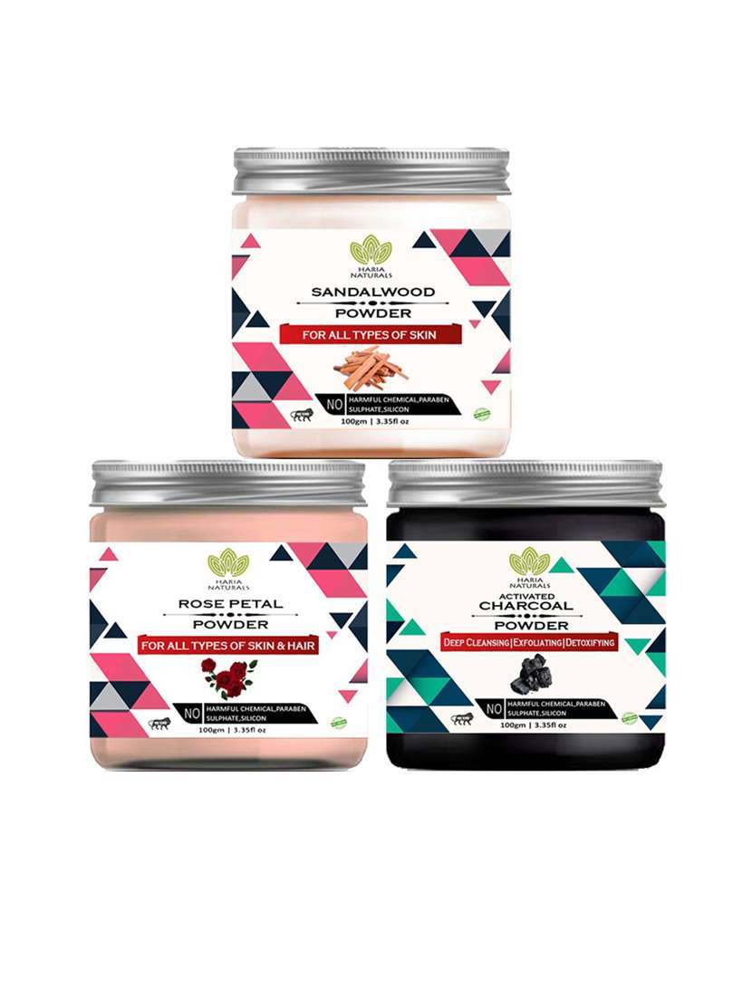 100% pure & naturals sandalwood powder 100gm & rose petal powder 100gm & charcoal powder 100gm (pack of 3) 300gm - 18636500 - Very Small Image - 1