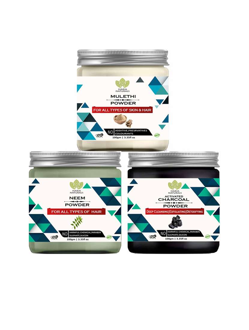 100% pure & naturals mulethi powder 100gm & neem powder 100gm & charcoal powder 100gm (pack of 3) 300gm