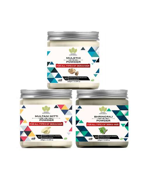 - » 100% pure & naturals mulethi powder 100gm & multani mitti powder 100gm & bhringraj powder 100gm (pack of 3) 300gm