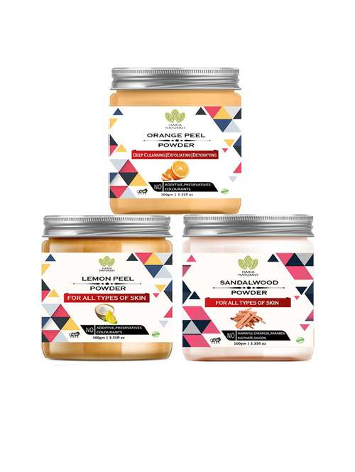 100% pure & naturals orange peel powder 100gm & lemon peel powder 100gm & sandalwood powder 100gm (pack of 3) 300gm