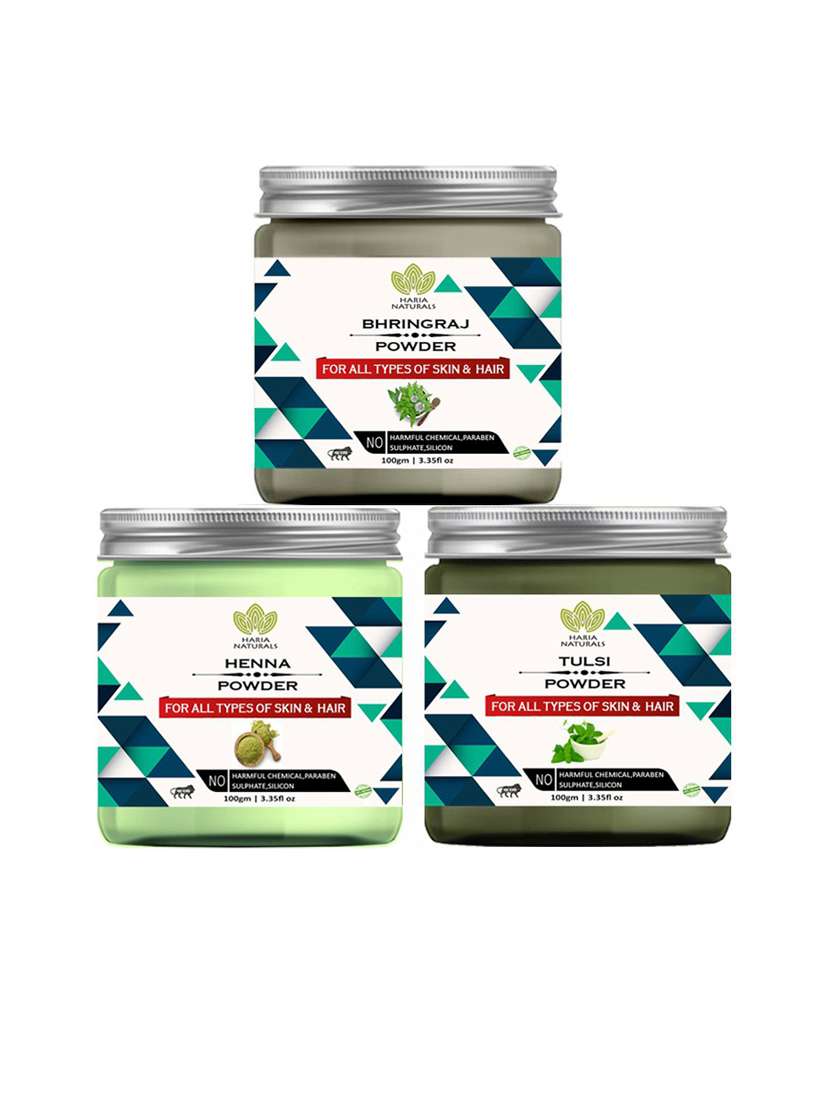 - » 100% pure & naturals bhringraj powder 100gm & henna powder 100gm & tulsi powder 100gm (pack of 3) 300gm