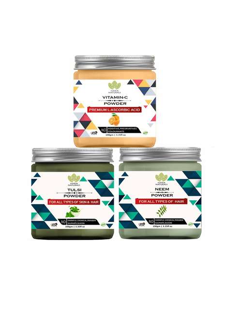 - » 100% pure & naturals vitamin-c powder 100gm & tulsi powder 100gm & neem powder 100gm (pack of 3) 300gm