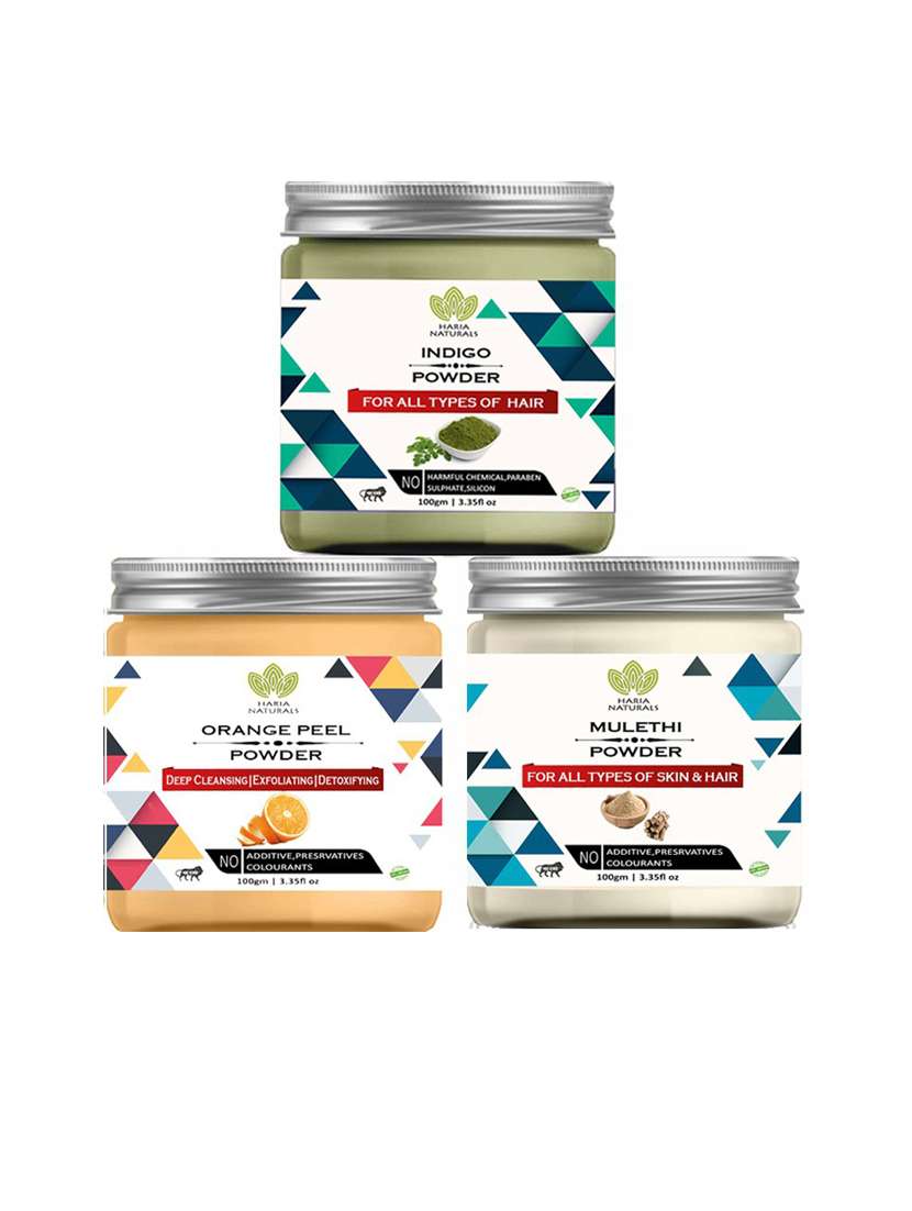100% pure & naturals indigo powder 100gm & orange peel powder 100gm & mulethi powder 100gm (pack of 3) 300gm