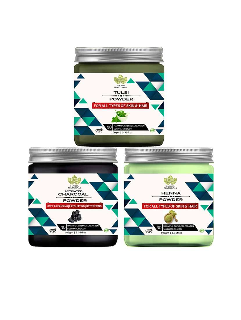 100% pure & naturals tulsi powder 100gm & charcoal powder 100gm & henna powder 100gm (pack of 3) 300gm