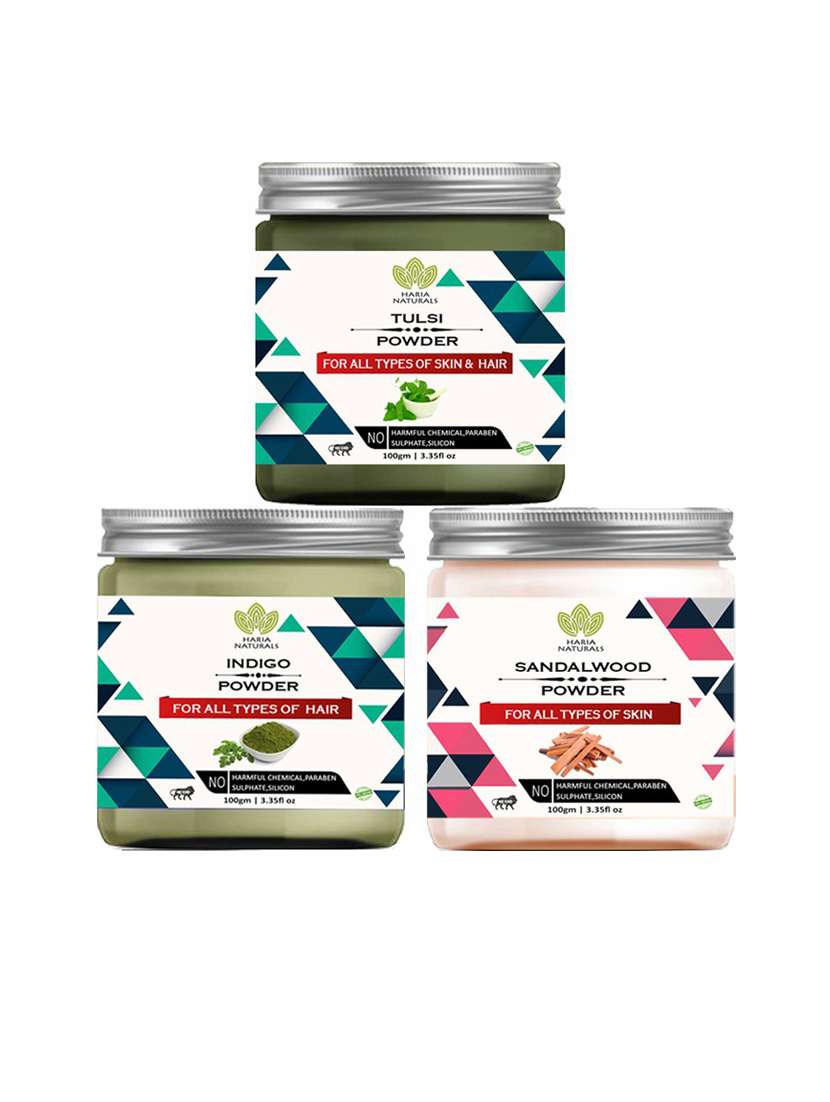100% pure & naturals tulsi powder 100gm & indigo powder 100gm & sandalwood powder 100gm (pack of 3) 300gm