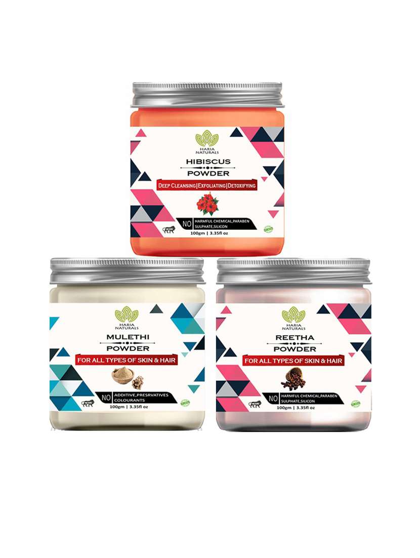 - » 100% pure & naturals hibiscus powder 100gm & mulethi powder 100gm & reetha powder 100gm (pack of 3) 300gm