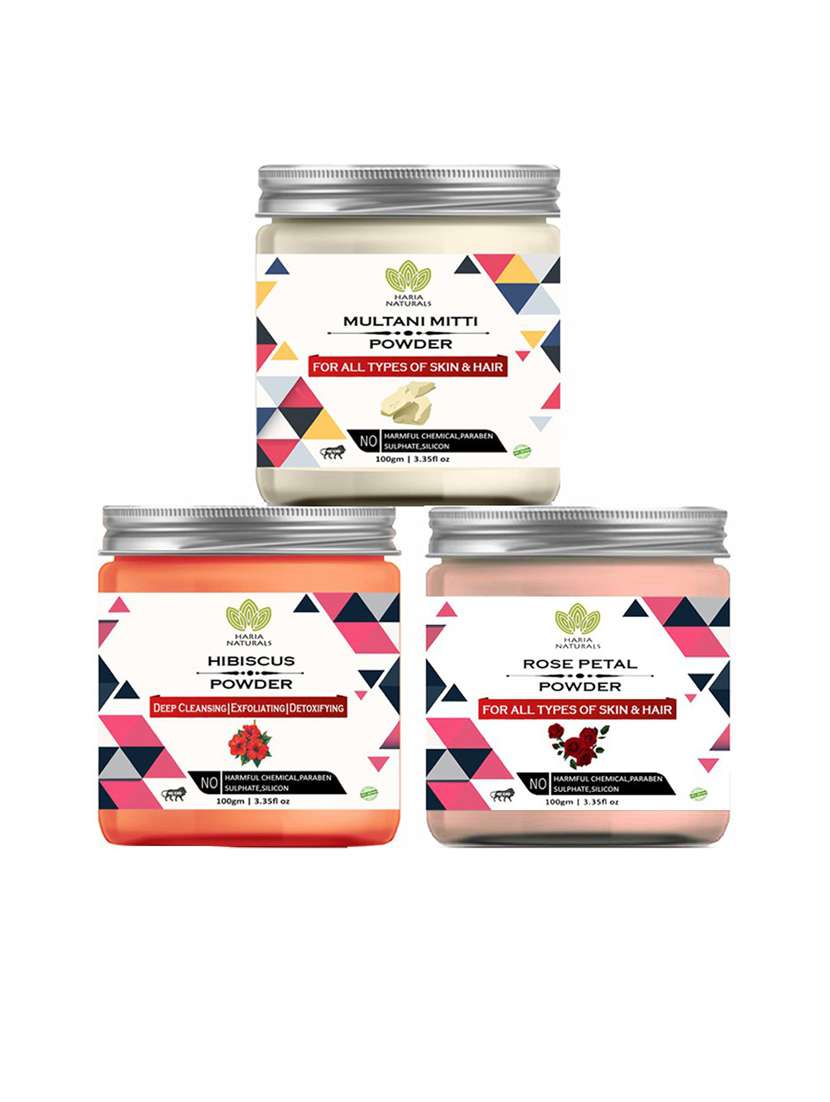 - » 100% pure & naturals multani mitti powder 100gm & hibiscus powder 100gm & rose petal powder 100gm (pack of 3) 300gm